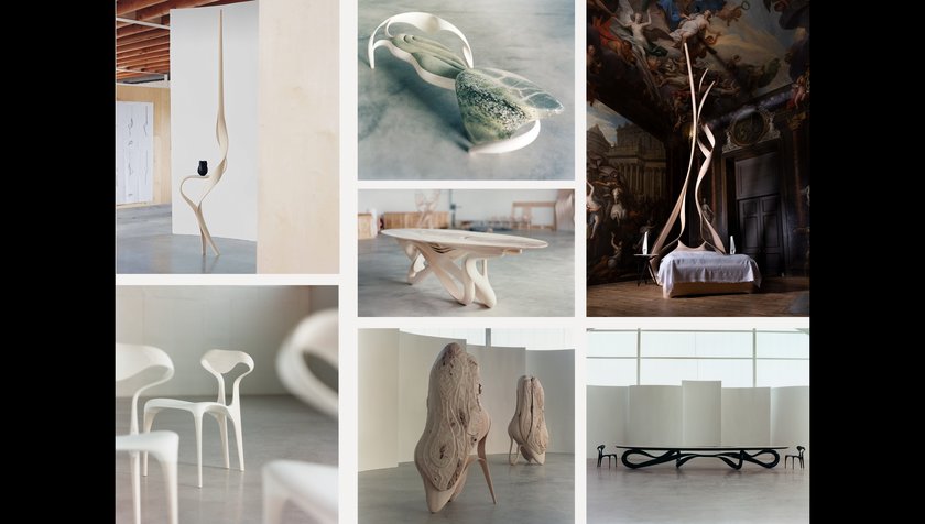 10. Mr Joseph Walsh nous présente une vidéo de son atelier et de ses œuvres réalisées principalement en lamellé-collé. Il a ainsi créé des œuvres monumentales de plusieurs mètres de haut et du mobilier aux formes originales. Notre frère Paolo va-t-il s'en inspirer pour créer des cithares aux formes aussi originales ?