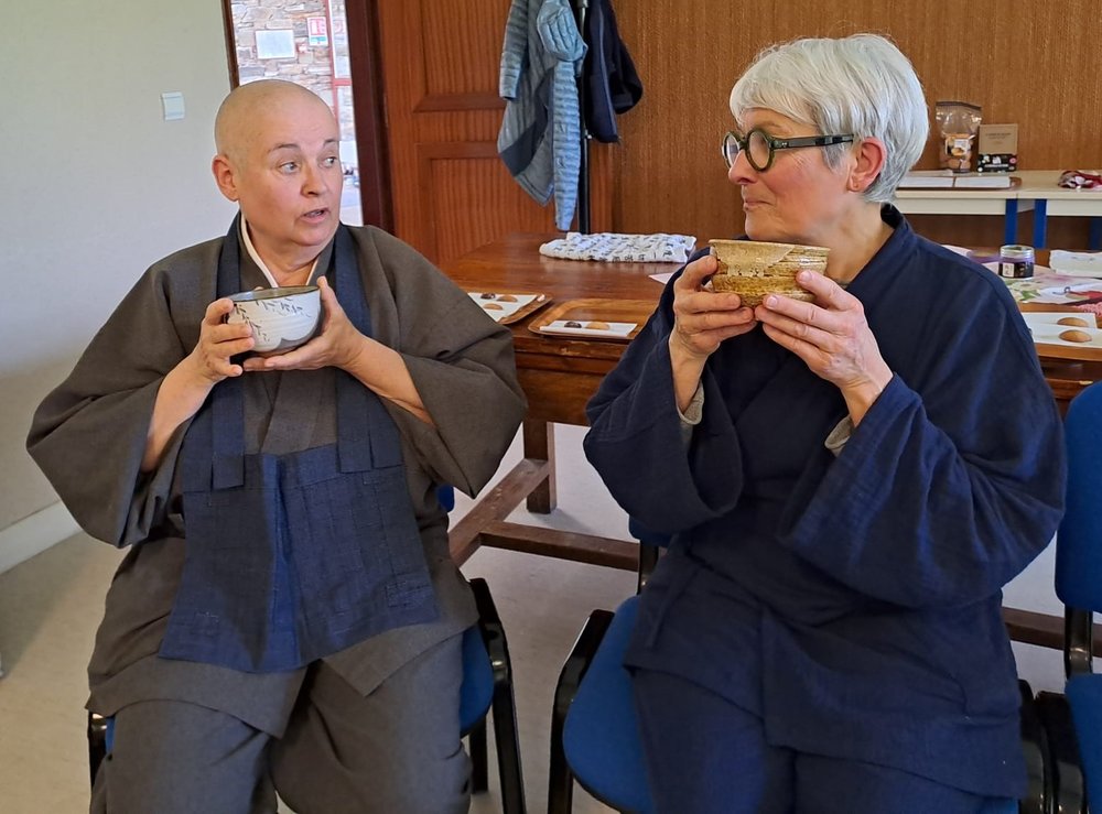 Je citais plus haut l'importance de « chadô » dans la voie zen. Si nous n'avons pas mis en œuvre une cérémonie de thé selon tous ses codes, nous avons dégusté le thé matcha, venu tout droit du Japon, dans un moment de belle convivialité avec nos frères.