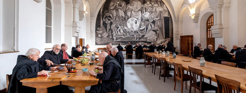 - 18h00 Vêpres (prière du soir) puis oraison (temps de prière silencieuse) jusqu'au repas