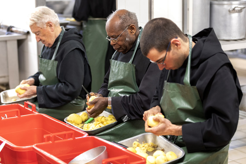 Certains services quotidiens sont assurés par les frères anciens : épluchages après la messe, le pliage à la lingerie. L'accueil à la porterie, à l'hôtellerie, au standard téléphonique mobilise aussi nombre de frères de tous âges.
